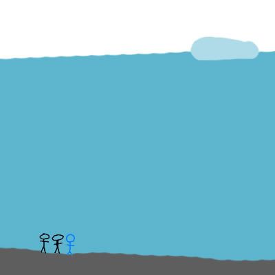 There's me, in the bottom right corner, the blue dude. Then there's the green blobs, those are trees, the blue blob is the steadily rising water, and then there's Bill and Jack over there. There were many more people in the crowd than that, though.